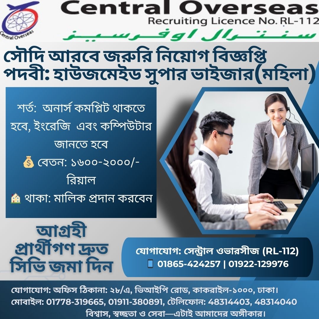Housekeeping and household jobs are common choices for Bangladeshi women of rural areas who want to become independent wage earners to cater for their family needs, So I choose this profession by Central Overseas.